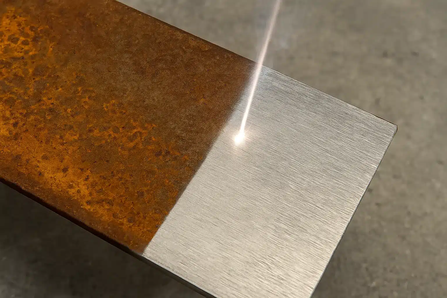 Lyset fra laseren varmer kun belægningen op, så den slipper overfladen i støv- eller gasform. Det gør laser rens ideel til opgaver, hvor man vil bevare materialets struktur og finish.